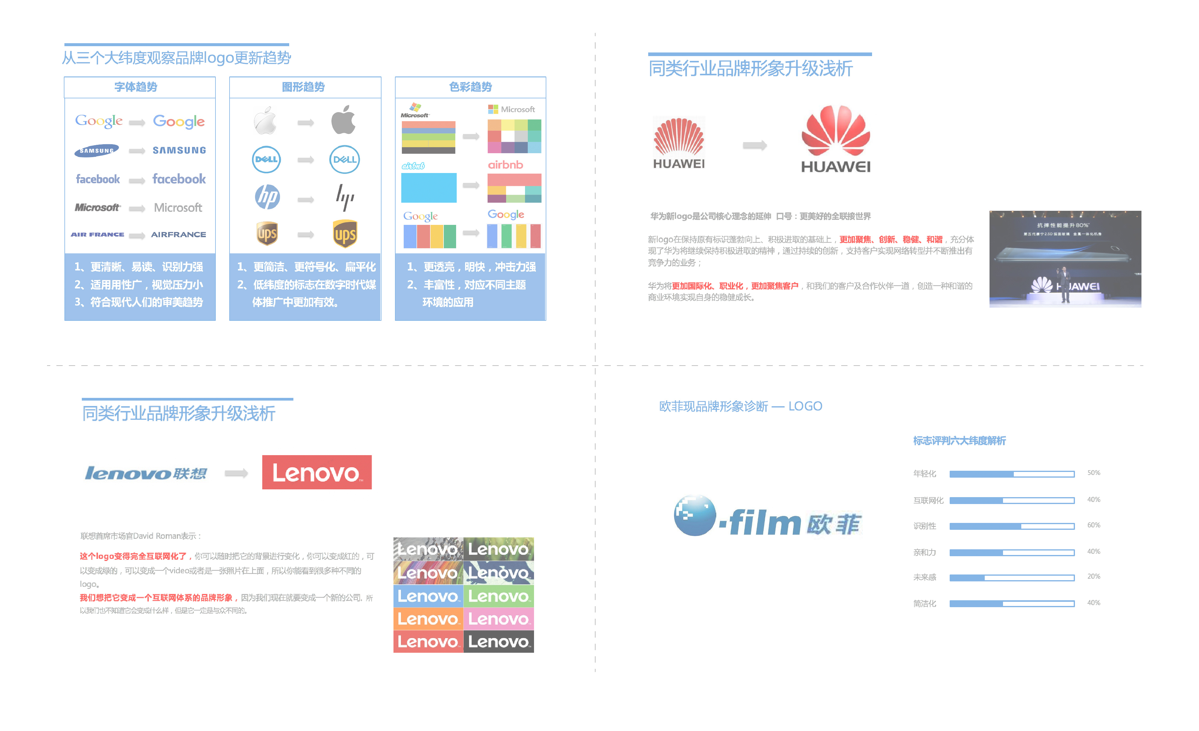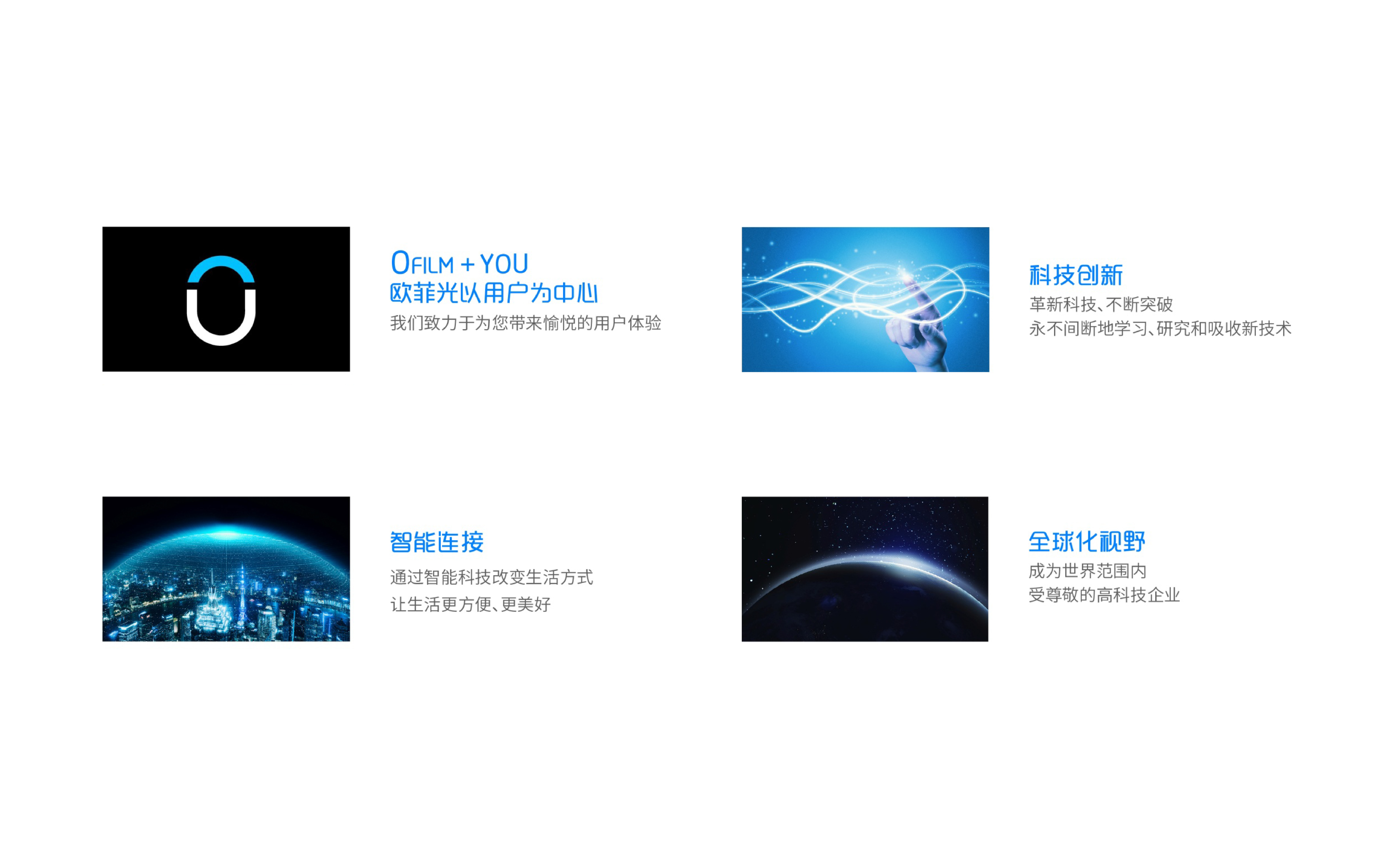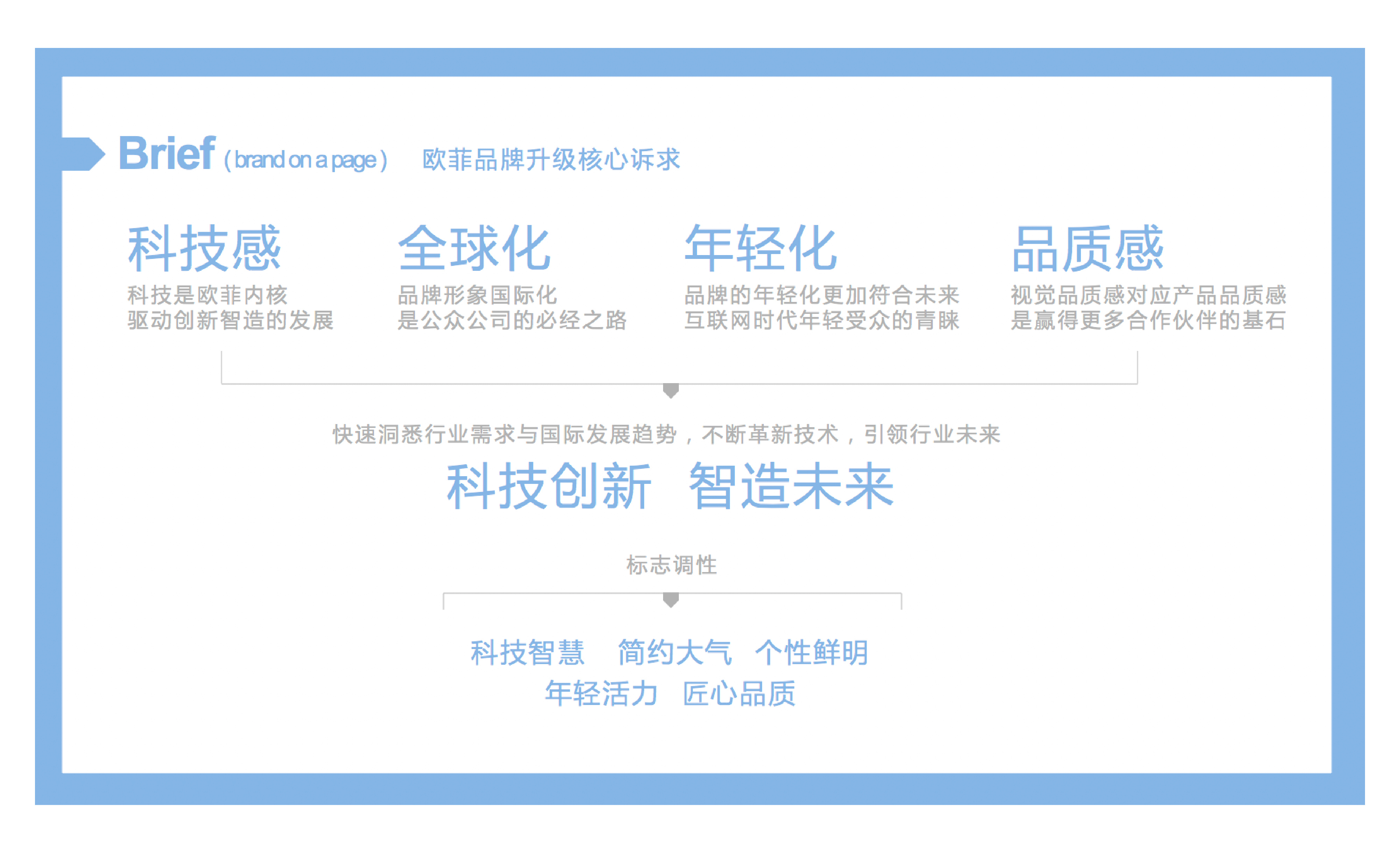 和與德在此次項目中協(xié)助歐菲光進行品牌標志更新,將歐菲光以客戶為中心、科技創(chuàng)新、智能連接、全球化視野等元素融入新的品牌標志中,使得品牌標志更加年輕化;同時,出具視覺識別指引手冊,指導歐菲光通過系統(tǒng)化的視覺符號,將其企業(yè)文化、服務宗旨和功能傳送給社會大眾,強化企業(yè)形象,并使品牌傳播獨特而且容易記憶。