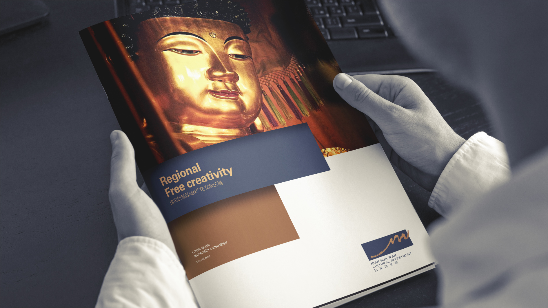 和與德通過多方研討,結合拈花灣文投的整體定位、發展目標、發展模式、產品體系、文化調性和目標群體等方面的考慮,設計了極富文化內涵的品牌標識。品牌標志以文化的筆觸構造為創意的手法,以品牌專屬性的字母“nhw”融入其形態,以源遠流長的華夏文明為歷史積淀,以文化的破格為設計理念。