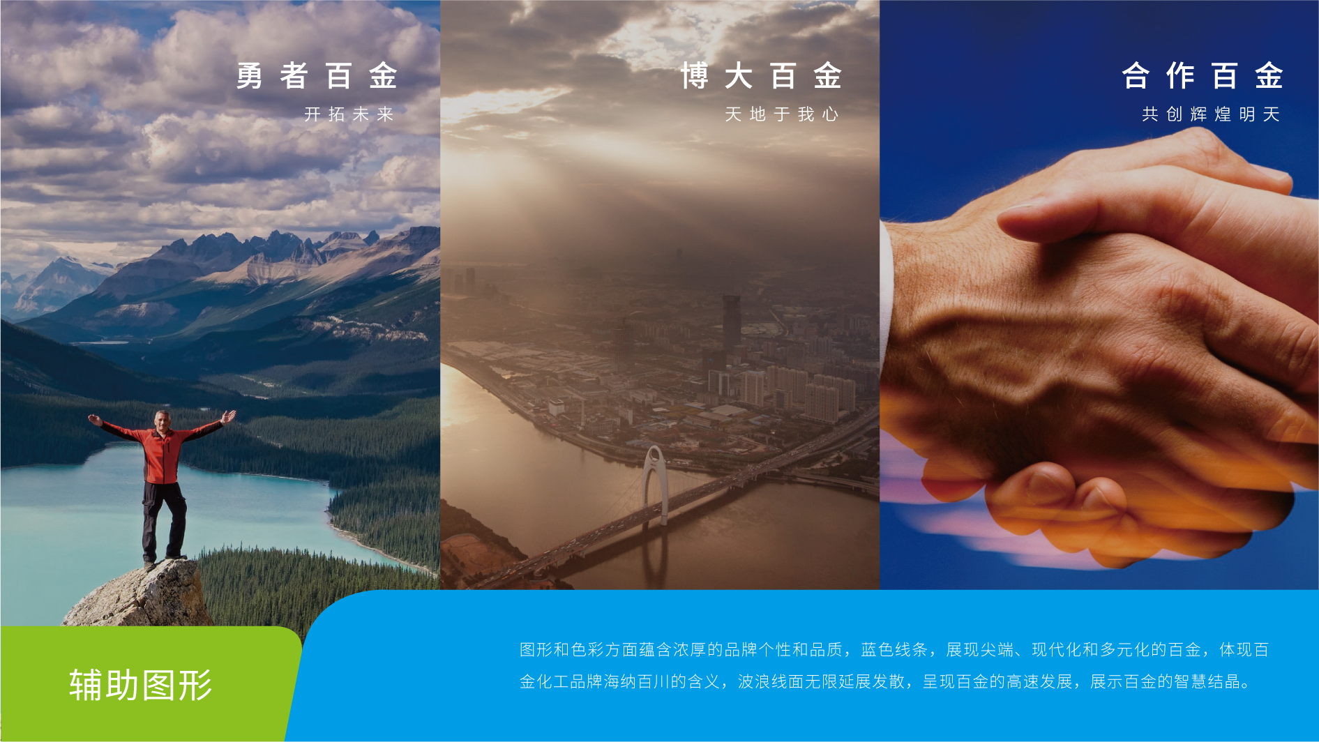 和與德從百金化工的經營目標、企業文化和管理理念出發,設計了視覺上十分出眾的品牌標志。“百金” 的標志讓人從視覺上從各個側面都能看到是由“百”字演變而來的,中間的圓球象征著企業的領導核心,公司全體員工緊密團結在其周圍,在其帶領指揮下業務不斷發展壯大。暗示了企業經營目標和優秀的管理理念和文化。同時寓意代表了“百金集團”能在經濟的商海中作為領航者,引導著“百金集團公司”走向更加輝煌的明天。