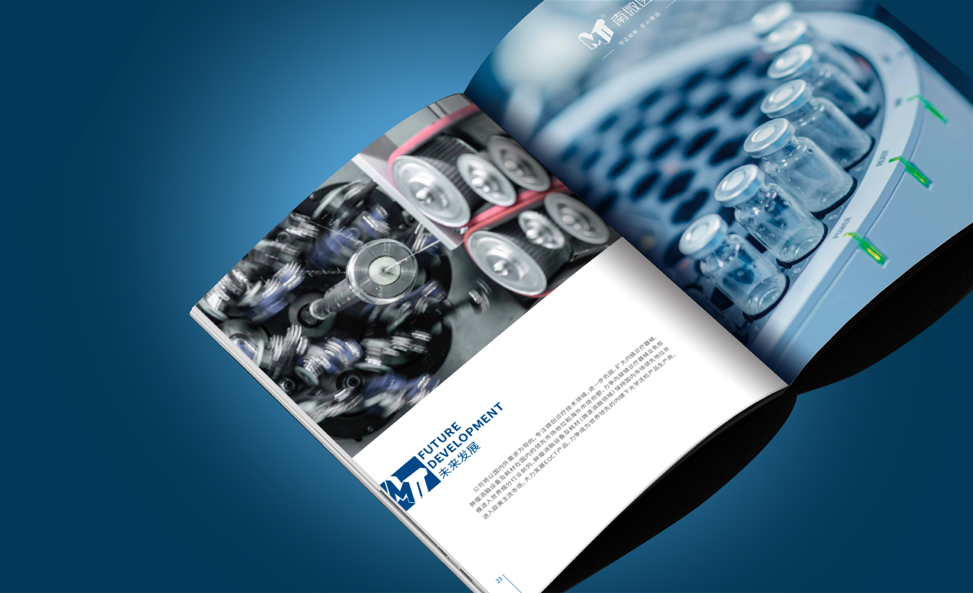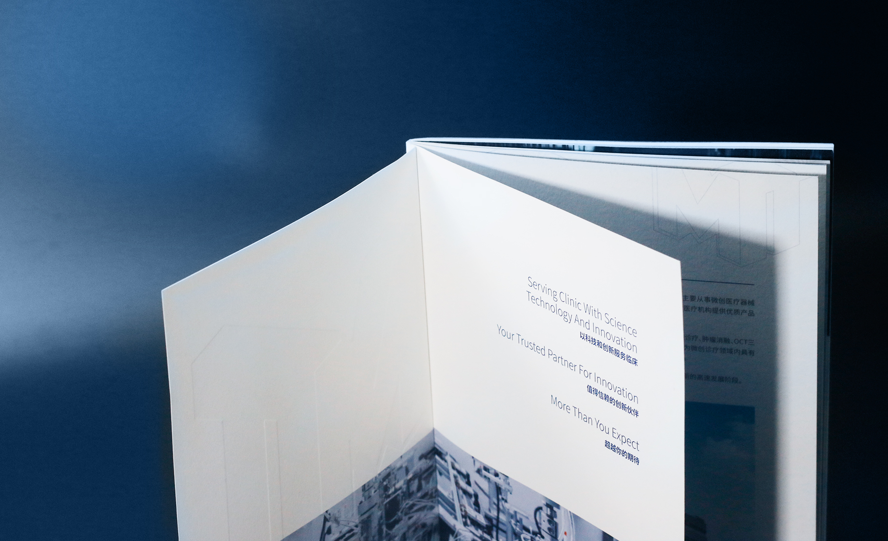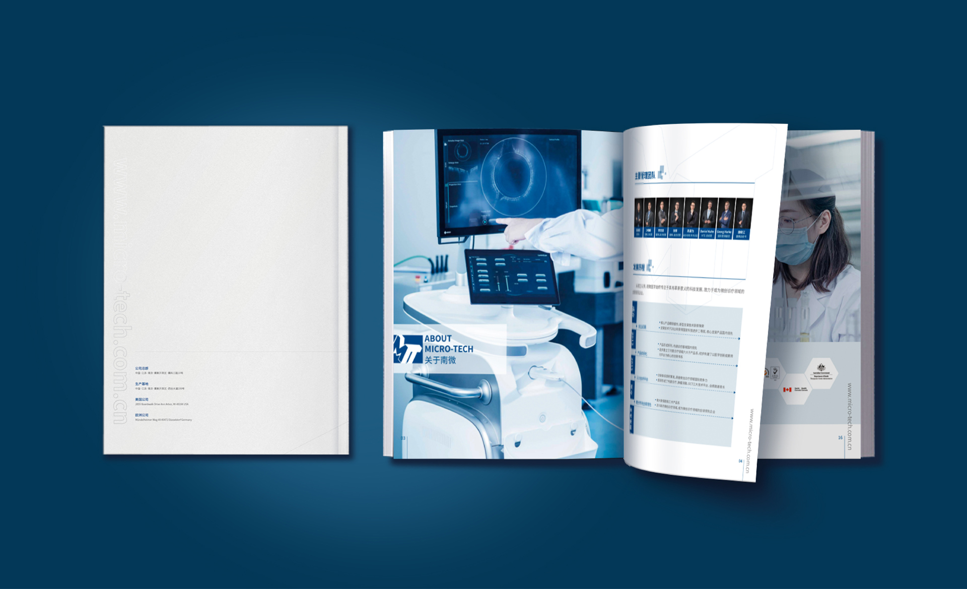 南微醫(yī)學(xué)公司找到和與德,希望為其公司設(shè)計(jì)一款國(guó)際化,簡(jiǎn)介商務(wù)風(fēng)格的公司畫冊(cè),適用于公司對(duì)外宣傳拓展業(yè)務(wù),和與德為此結(jié)合了通過對(duì)南微醫(yī)學(xué)品牌的調(diào)研,了解其公司高精尖的醫(yī)療產(chǎn)品后,為畫冊(cè)定制了一套國(guó)際,簡(jiǎn)約,整體富有科技感風(fēng)格的畫冊(cè),利用點(diǎn)線面,細(xì)線和色塊突出儀器的精密,科學(xué),整體顏色為藍(lán)色調(diào),科技風(fēng),印刷工藝采用了凹凸的壓印技術(shù),凸顯出企業(yè)的大氣和國(guó)際化。
