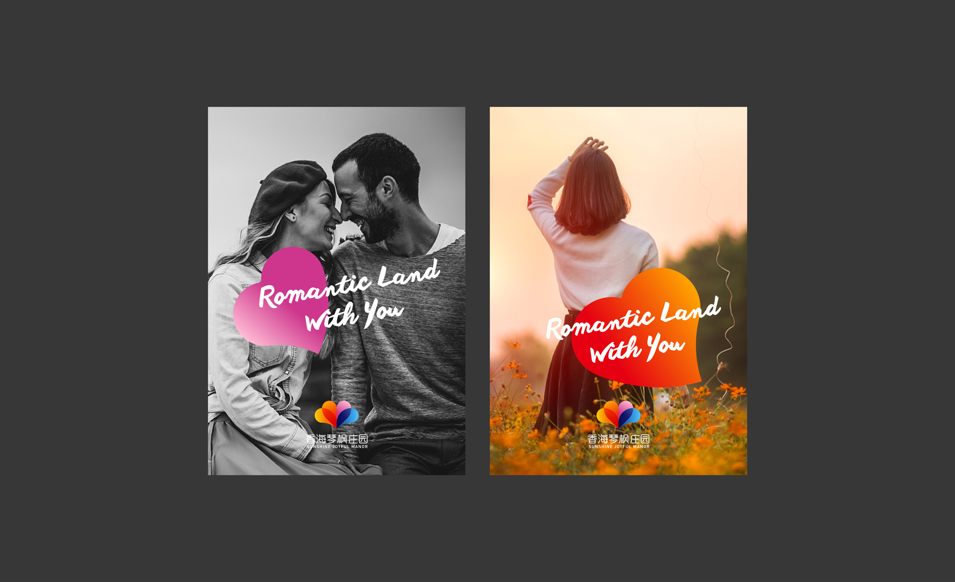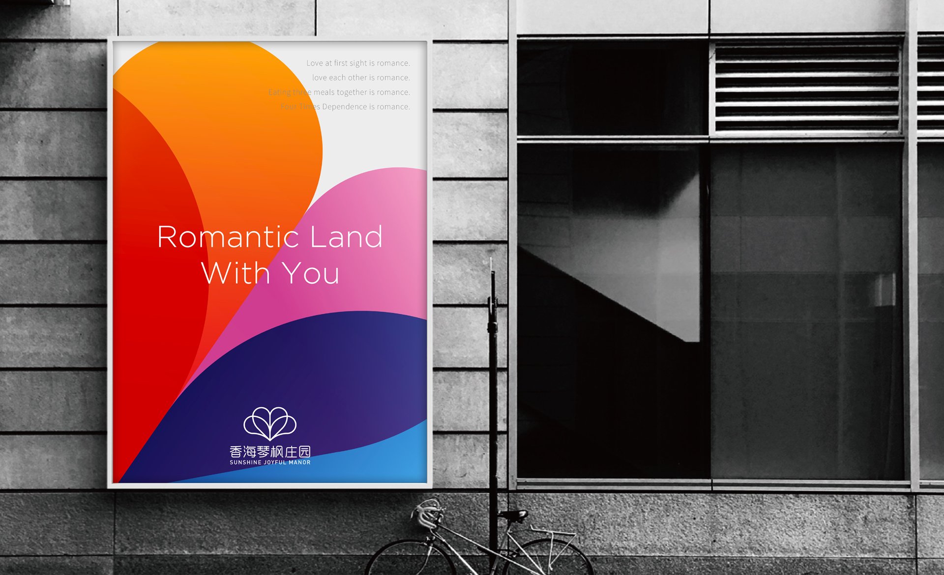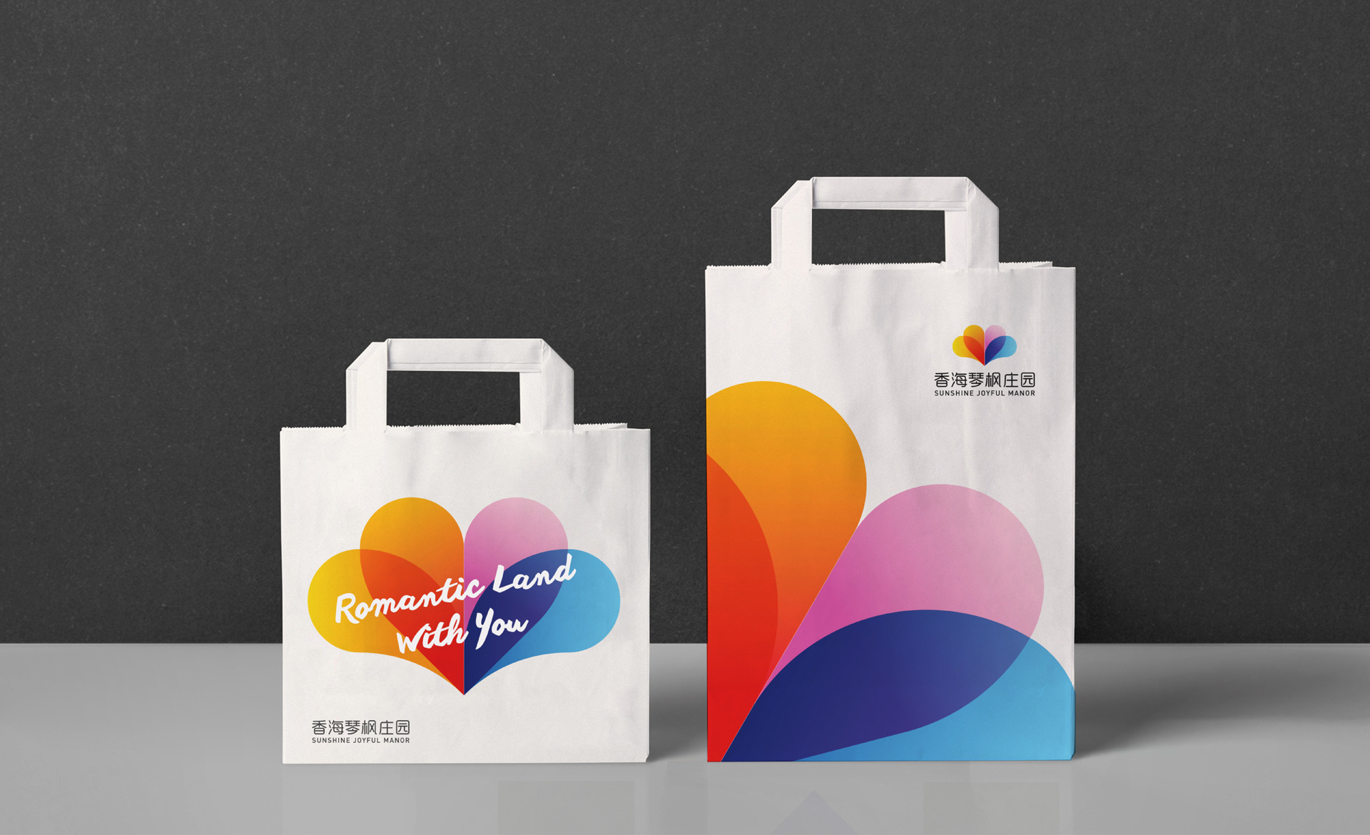 隨著品牌發(fā)展,香海琴風對品牌進行了全新的定位,定位為浪漫地標。此次設計圍繞著浪漫地標,愛的聚集地為核心設計點,結合了香海琴風莊園內花田的元素,設計出了一款多彩,綻放形態(tài)的logo,用視覺烘托出浪漫的品牌形象。