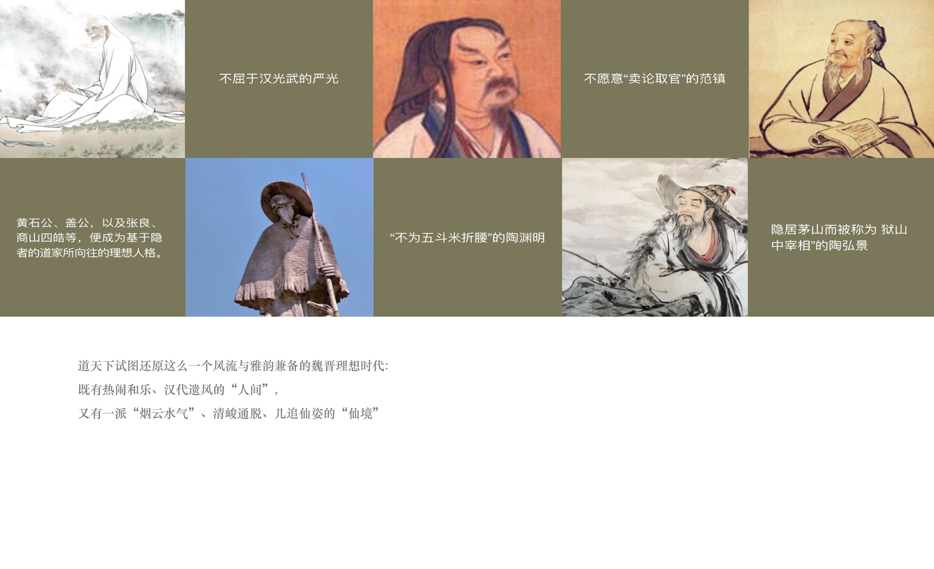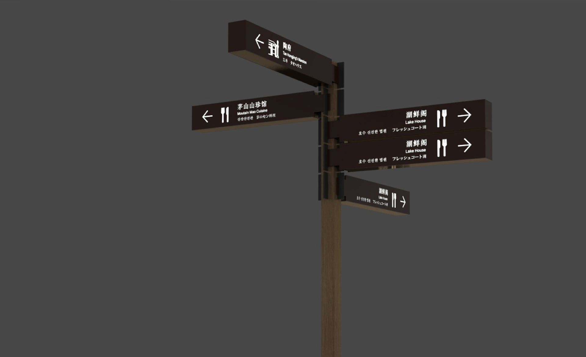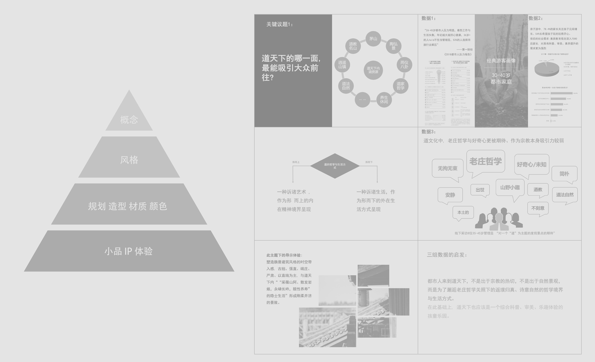 和與德通過多次實(shí)地勘察與會(huì)議調(diào)研,分析診斷原有導(dǎo)視系統(tǒng)存在的“硬傷”(游客看不見、看不懂、找不到等問題)并提出了針對(duì)性的解決方案;以標(biāo)準(zhǔn)性、可達(dá)性、有效性等設(shè)計(jì)原則為基礎(chǔ),重新科學(xué)規(guī)劃了景區(qū)交通動(dòng)線、合理劃分了各功能布局并有效設(shè)置了各類標(biāo)牌點(diǎn)位;深挖景區(qū)核心“道教文化“基因,剖析魏晉風(fēng)格的建筑特點(diǎn),最終提煉出”應(yīng)物“的設(shè)計(jì)概念,巧妙貫穿于整體導(dǎo)視系統(tǒng)設(shè)計(jì)中。