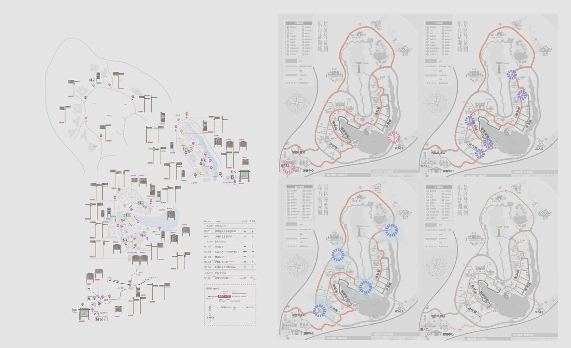 東方鹽湖城是由龍城旅游控股集團(tuán)投資建設(shè),位于中國道家圣地金壇茅山,以茅山特有的“山、水、茶、 鹽、藥、泉”六大資源及道文化為依托,打造國內(nèi)首個(gè)集休閑度假、文化展示、互動(dòng)體驗(yàn) 等多主題的閑養(yǎng)度假區(qū)。對(duì)外開放的“道天下·逍遙山鎮(zhèn)“,占地1000畝,是一個(gè)集合特色酒店、主題演繹、 娛樂體驗(yàn)、文化博展、美食商業(yè)等多種業(yè)態(tài)的旅游度假目的地和勞模(職工)療修養(yǎng)基地。為爭創(chuàng)5A級(jí)景區(qū)并解決景區(qū)原有導(dǎo)視系統(tǒng)功能不足等問題,東方鹽湖城旅游發(fā)展公司啟動(dòng)了道天下景區(qū)導(dǎo)視系統(tǒng)設(shè)計(jì)的工作。