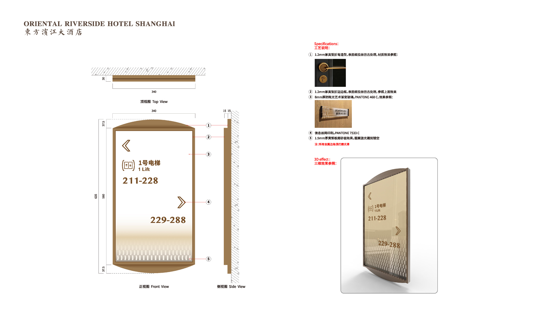 原有導視系統在視覺層面和功能層面存在的缺少系統性、美觀性及全局性的問題,不但影響了客戶日常運營管理工作,而且影響了其所接待的客人對其整體形象的認可度。和與德在充分了解其需求后,提出了相應的導視系統提升建議及方案,視覺層面側重考慮上海國際會議中心獨有的建筑環境空間特色,結合聚、散、流,從LOGO中演化輔助圖形,并通過漸變等工藝建議,以凸顯其品質感;功能層面側重從各樓層中的功能布局及各分區的關聯性出發,系統性地進行規劃布點,力求實現不同人群的導向需求。