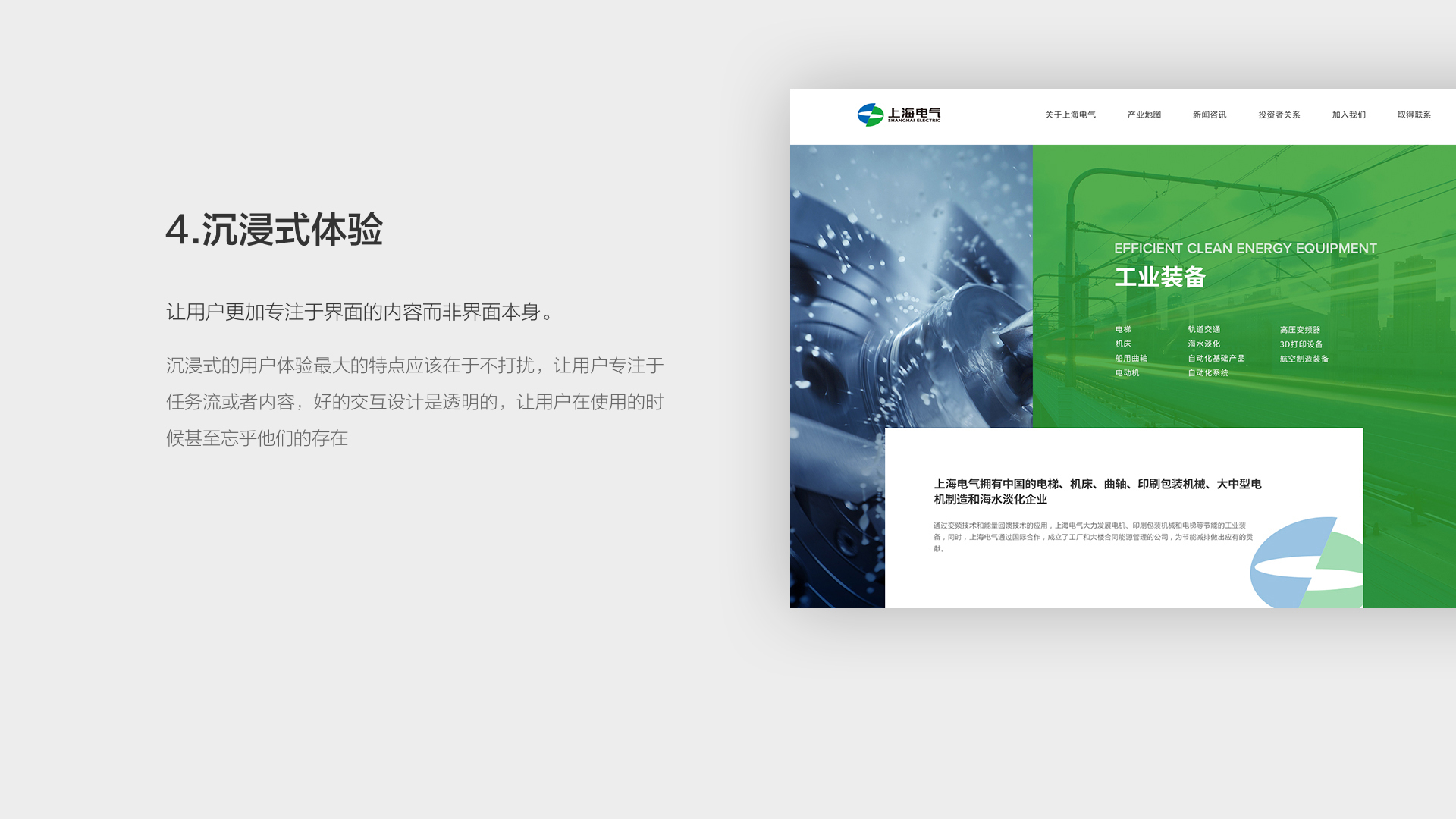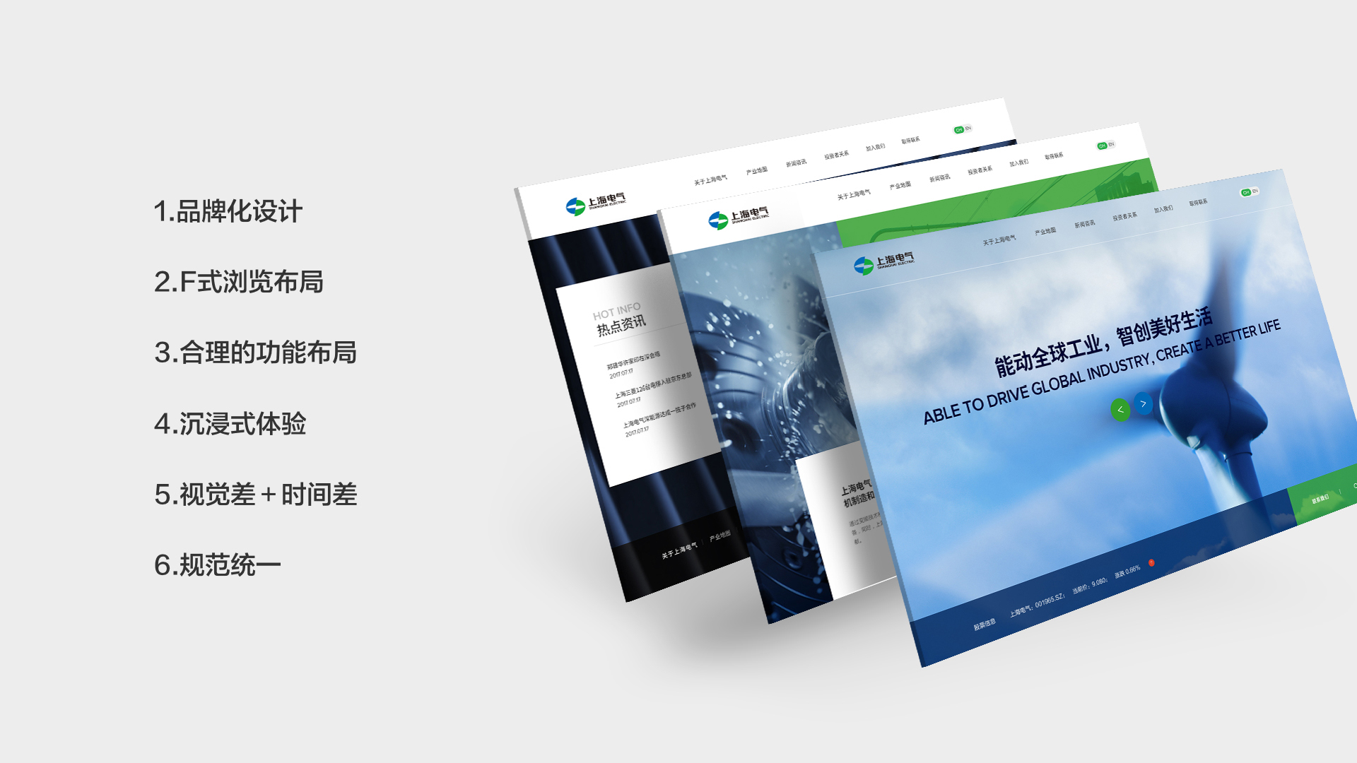 和與德為上海電氣集團設計了網站,從品牌定位出發,通過品牌化設計、F式瀏覽布局、合理的功能布局、沉浸式體驗、視覺差+時間差、規范統一等視角進行系統設計,贏得了顧客的一致信賴。