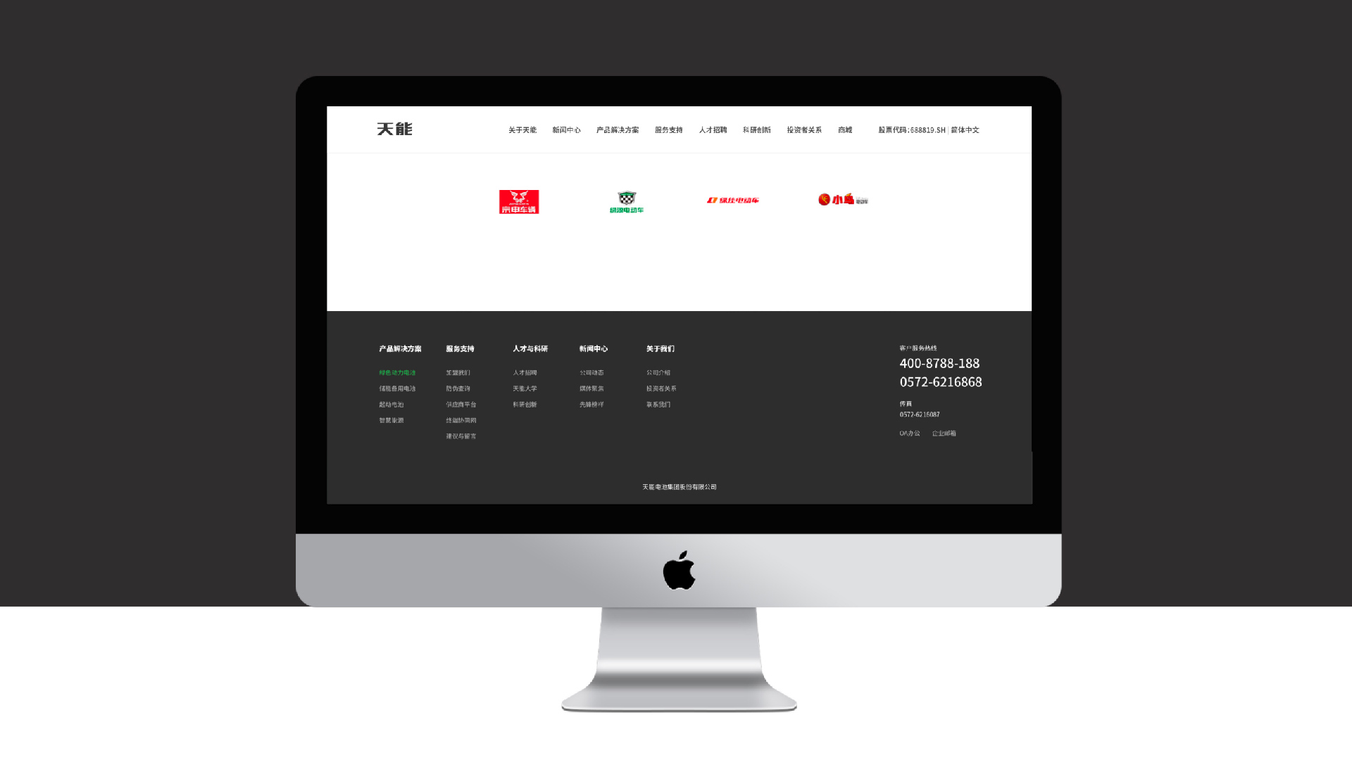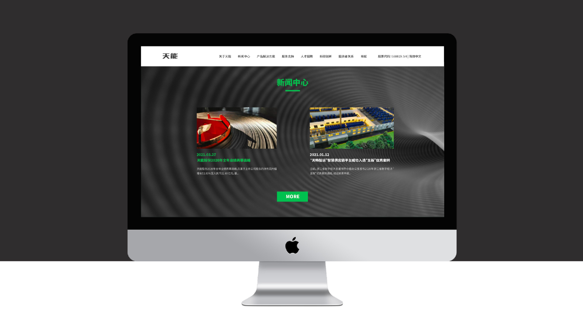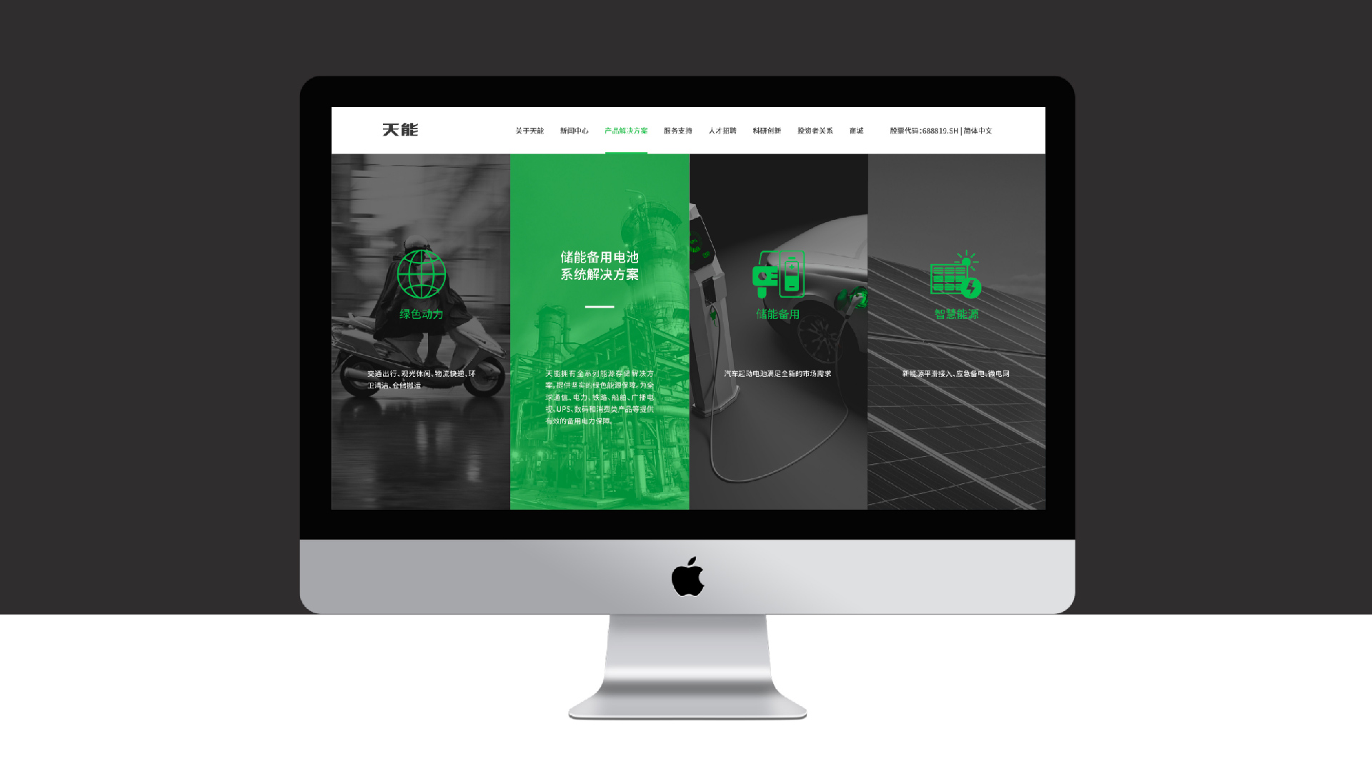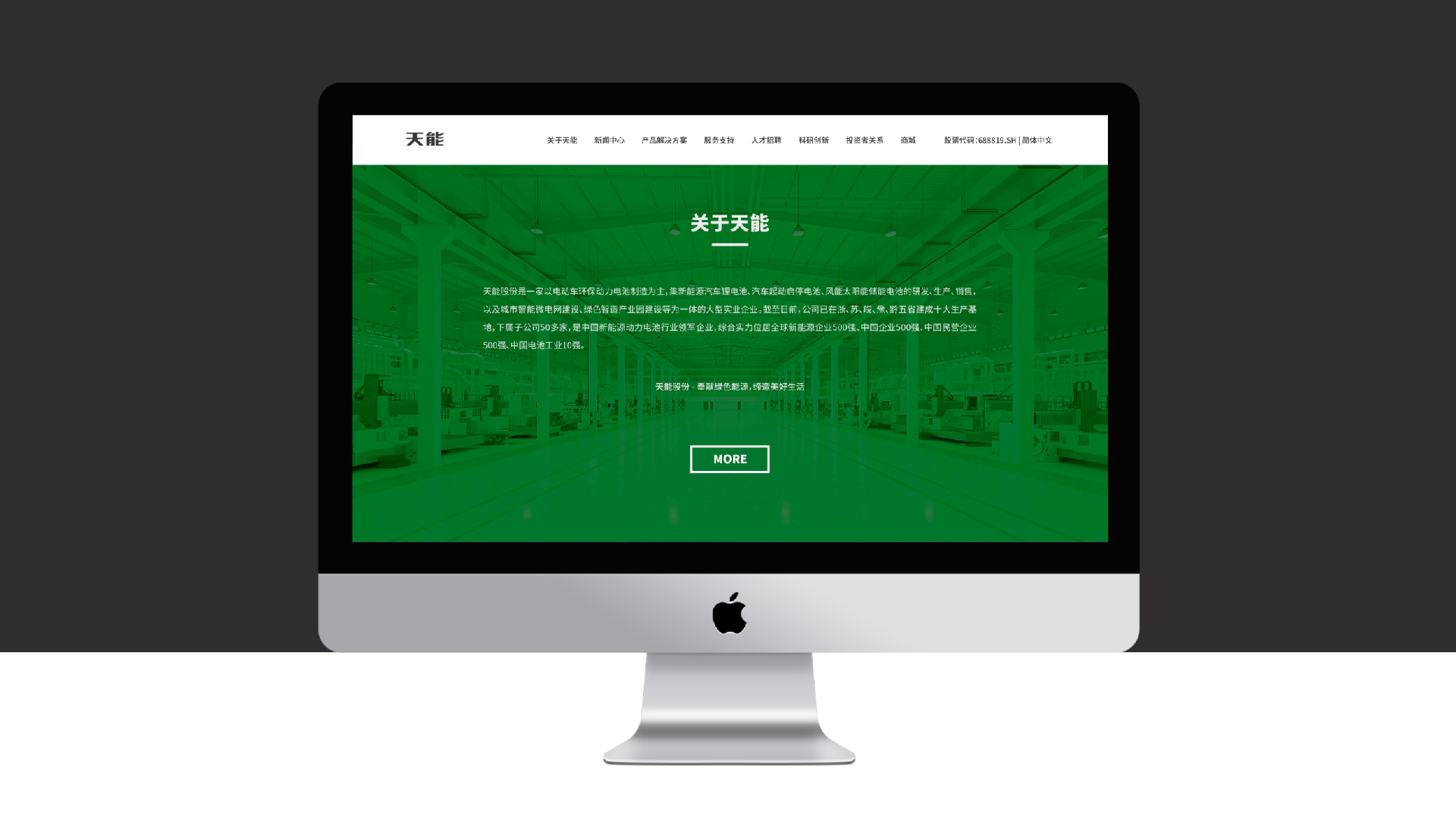 和與德本次對天能電池的官網設計簡潔、現代。以綠色為主色調,整體給人以清新、科技感強的印象。網站首頁采用了大面積的圖片展示,通過高清的圖片和簡單明了的文字說明,生動形象地展示了天能電池的產品和技術特點。網站的導航欄設置清晰明了,包含了公司介紹、產品中心、技術中心、新聞中心、投資者關系、聯系我們等板塊,用戶可以快速地找到所需要的信息。