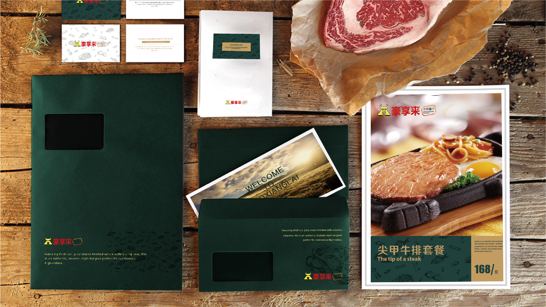 和與德根據豪享來餐飲的企業文化和菜品特色,設計品牌標志,體現其“包羅萬象之味,至臻品質之范”。