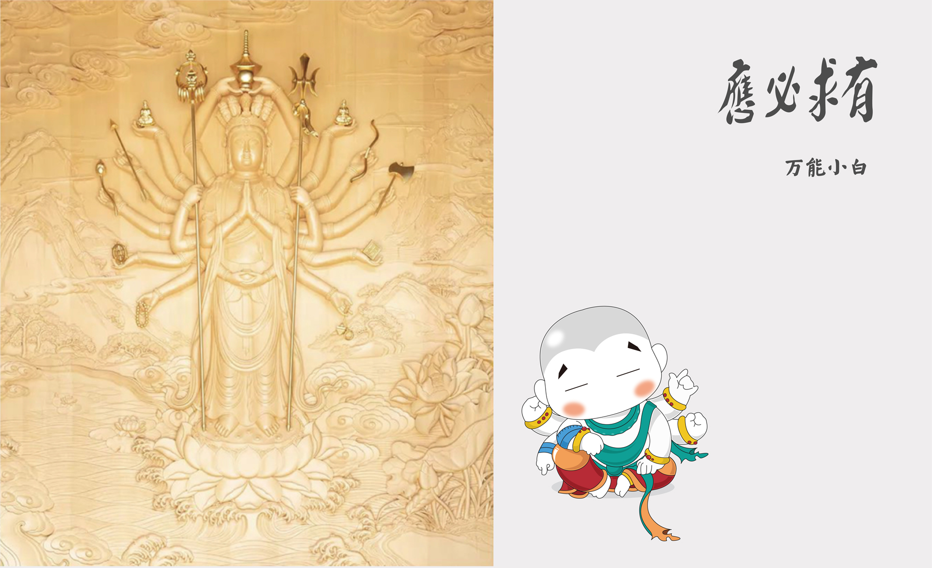 佛教作為一個理智嚴肅的文化產物,如何以輕松,親民的姿態走進人們的生活,并且達到為人們的生活增添彩,豐富人們的精神世界的效果,這是項目的主要難點。和與德提出精彩佛教,添彩生活的推廣理念,把精彩二字理念融入文創產品,IP吉祥物以及禮品定制的設計方案中,使佛教文化更容易走進人們的生活,為人們生活增添異彩。