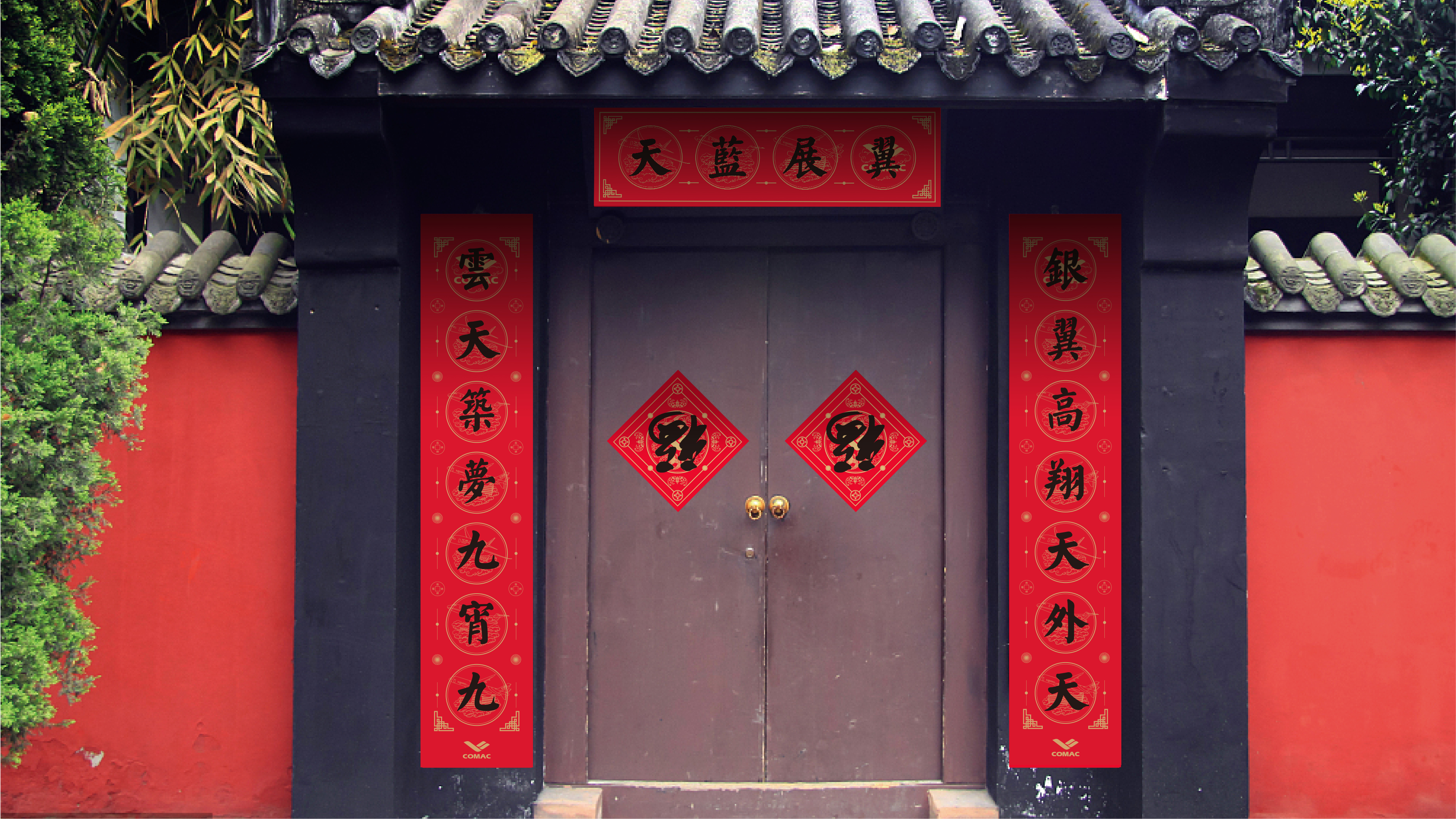 2020年是上海飛機設計研究院成立50周年,和與德為客戶設計了50周年紀念徽章、旗幟、紀念牌、紀念服、紀念品禮盒等文創用品,贏得了顧客的一致好評,和與德以此贏得持續服務的機會,為其設計了春聯、春節紅包、手機殼、挎包、絲巾等一系列文創用品。
